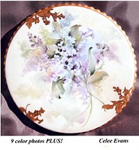 Celee’s “signature” small flowers are daintily combined with shadows and the shape of the porcelain piece to create a wonderful collection; they are shown from more than one angle, in color, and include penwork scrolling, mother of pearl, and detailed attention to subject placement in relationship to the shape of the piece of porcelain itself.