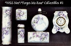 Wild-Nots/Forget-me-Roses, Collectibles #2 (on six different pieces, including clock, vase, perfume bottle, and three boxes)