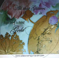 Celee's Two Newest DVDs - July 2010! Each DVD is over an hour long and includes five color photos. The two titles are "Marbling that Mingles" and "All that glitters...is Agate-Etched Gold". Simplification of the step-by-step processes for both Agate Etched Gold & Marbling is unsurpassable! The mechanics are explained logically and clearly. Celee's creative options for both of these techniques are endless and are covered very thoroughly for over an hour, preparing you to pick up any piece of porcelain and design confidently with either "Marbling that Mingles" or "All that Glitters.....Agate Etched Gold." NOTE: The DVD’s were not filmed in HD so quality is highest when shown on smaller screens. | ||