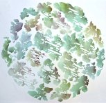 To LEARN carving: First slide a decal sheet into a clear plastic sheet protector. Then choose from one of the clusters and lay in double loaded paints – use Celee’s “Ready Carver” or an equivalent #18 square shader to lay in the color with hard and soft edges. Next, slide white paper under the plastic to view your paint application. Then use silk over your index finger to scrape away or remove the wet paint exactly where Celee’s sample cluster has it. After carving out all of these negative spaces, use your large wipe out tool to clean the negative spaces you just carved. Re-insert the white card to view your beautiful finished carved cluster. If you repeat this process 4 or 5 times on the same cluster you will begin to intuitively learn the ratio of positive and negative spaces and the sequence that leads to the finished cluster, and you will be on your way to beautiful carving on your own piece. There are literally hundreds of segments to choose from on these sheets!