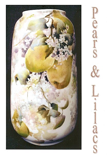 Pears dominate the front panel, while lilac dominate the back. Plenty of carved