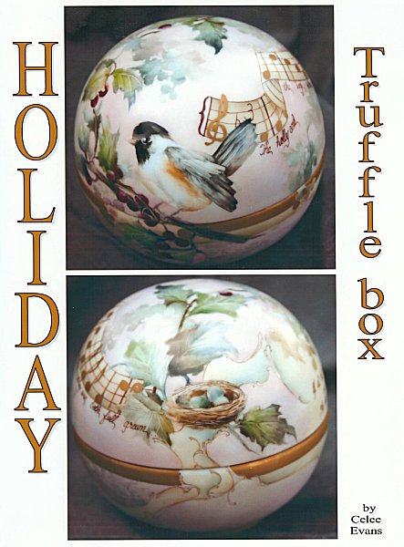 backed by holly, sheet music, and a banner that weaves along the top and bottom;
