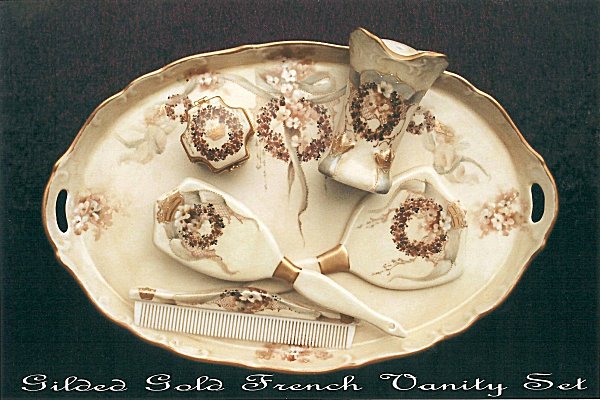 Mirror, Comb, Hatpin Holder & Perfume Caddy.
